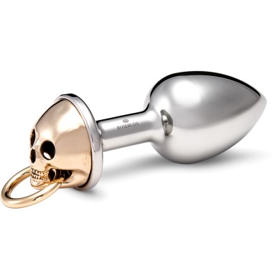 Eine erotische Rückansicht kann sehr reizvoll sein... Der Intimschmuck Rosebud mit Totenkopf-Motiv SKULL ist ein Schmuck-Butt-Plug aus rostfreiem Edelstahl mit einem Motiv-Kopf in Form eines Totenkopf. Der Motivkopf besteht aus Bronze. Am Totenkopf ist ein Ring befestigt, an dem man z.B. ein Schmuck- oder Lederband befestigen kann. Der Schmuck wurde vom französischen Künstler Julian Snelling entworfen und kann als Intimschmuck während des Tages zur sanften Stimulation oder während des Liebesspiels als erotisches "AddOn" getragen werden. Neben dem analen Einsatz ist auch ein vaginaler Einsatz denkbar.